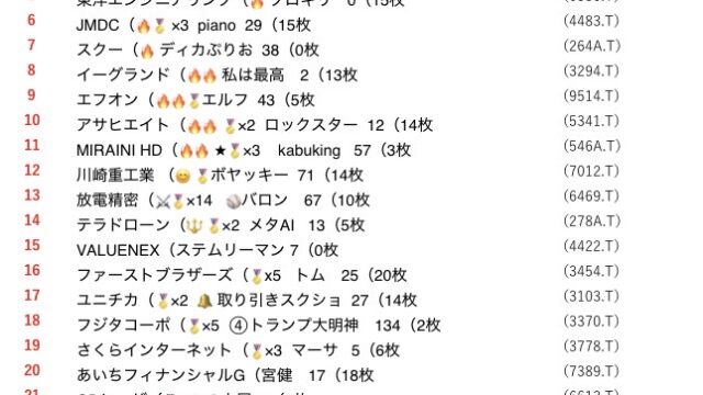 鉄人戦🏆第339回 鉄人戦 ⑤終値🏆(3/23〜3/27 ) 逆転優勝 🏅V2 ロックスター おめ🎉 10P@ek6kvjpVFF97361 優勝者へのフォローよろしく👍 2位 株奮闘中ねこ好き 9P3位 orz 8P4位 スクショ 7P5位 kabuking 6P6位 Bコミ 5P7位... 2026.03.28 0鉄人戦