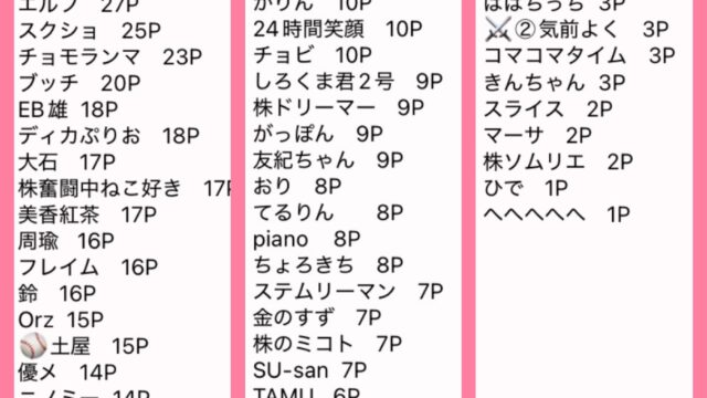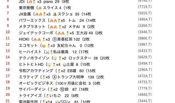 鉄人戦🏆第341回 鉄人戦⑤終値🏆(4/6〜4/10 ) 逆転優勝🏅×3 スクショ おめ🎉 10P 2位 周 9P3位 おり 8P4位 ロックスター 7P5位 TAMU 6P6位 メタAI 5P7位 宮健 4P8位 ぱぱちっち 3P9位 スライス 2P10位 トランプ大明神 1P ... 2026.04.10 0鉄人戦