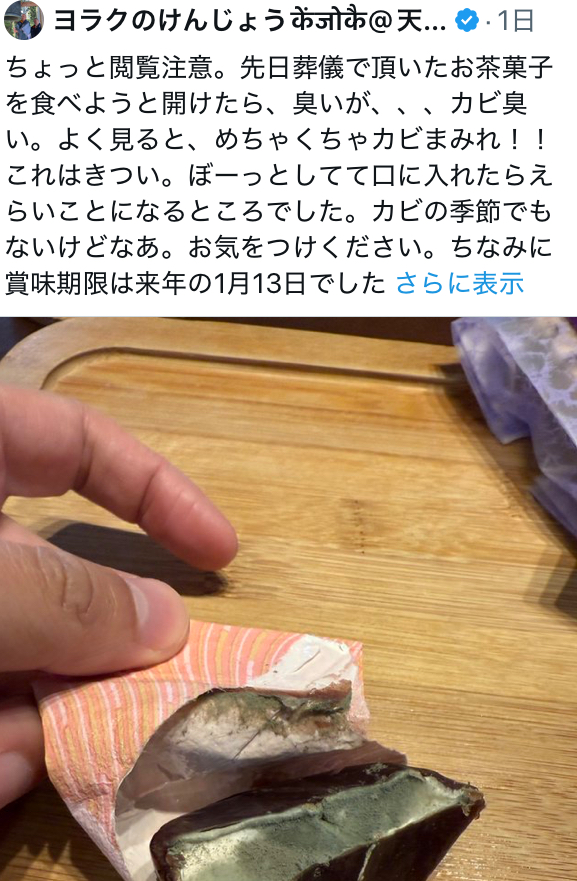 ・目に見える部分はカビだけでなく、菌糸は食品の奥まで広がっている。そのため、 表面を削るだけでは安全になりません。
