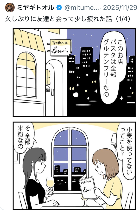 「健康そう」に見えるだけで、脂質や糖質が普通より多い加工食品も多く、栄養学者の間では、健康目的ならグルテンを抜くより食事全体を整える方が圧倒的に効果的という意見が一般的です。