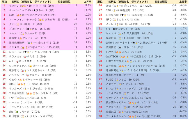 ◼️第316回 鉄人戦② 終値◼️(10/6〜10/10)鉄人戦Processed with MOLDIV 2025.10.07スポンサーリンク首位 バロン 継続2位 僕ちん3位 スクショお疲れ様でした😊Processed with MOLDIV