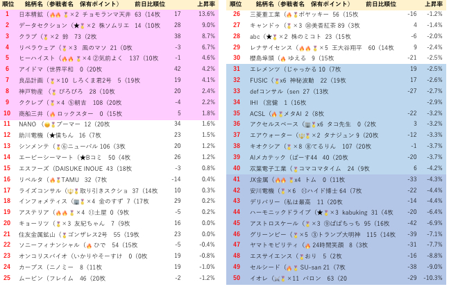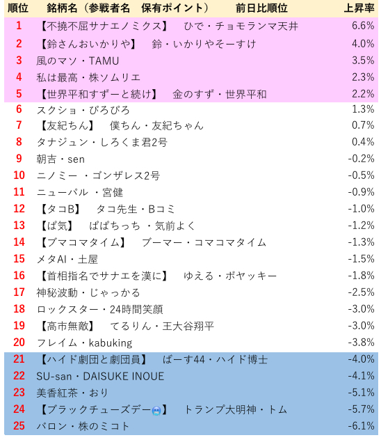 ◼️第317回 鉄人戦② 終値◼️(10/14〜10/17)