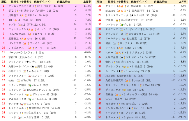 ◼️第324回 鉄人戦④ 終値◼️(12/1〜12/5 )鉄人戦Processed with MOLDIV 2025.12.04スポンサーリンク首位 バロン 継続2位 トランプ大明神3位 ぶりくんお疲れ様でした😊Processed with MOLDIV