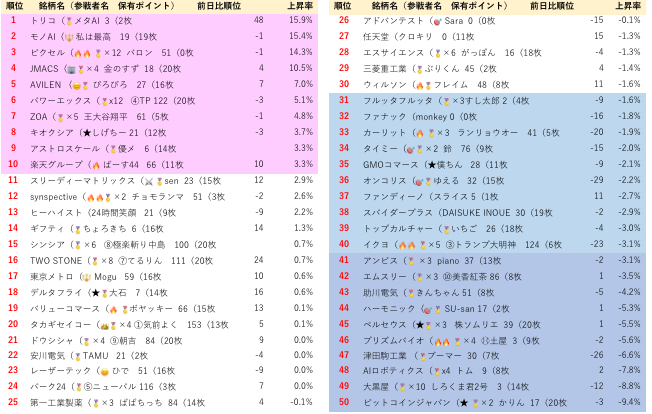 ◼️第327回 鉄人戦②終値◼️(12/22〜12/26 )鉄人戦Processed with MOLDIV 2025.12.23スポンサーリンク首位 メタAI キターーーー2位 私は最高3位 バロンお疲れ様でした😊Processed with MOLDIV