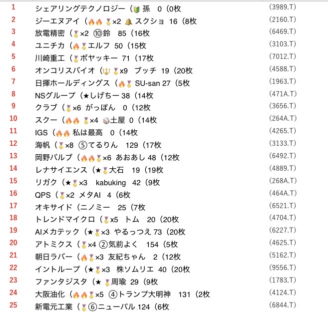 ◼️第339回 鉄人戦 参戦者◼️(3/23〜3/27)