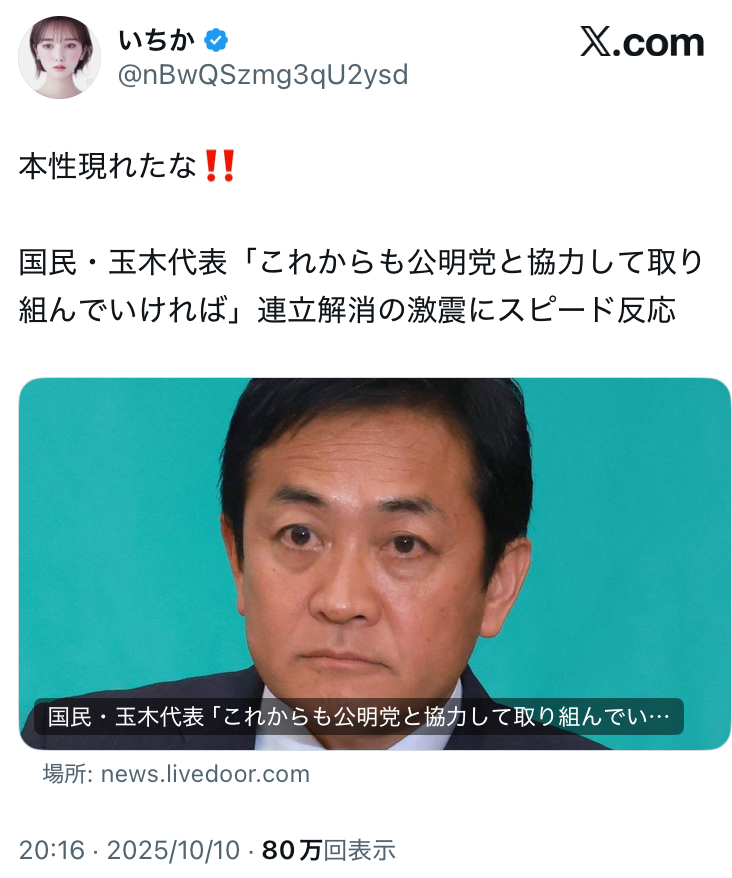 2025年10月10日、公明党は自民党との連立政権からの離脱を正式に表明しました。これにより、26年間続いた自公連立政権は事実上解消されました。自民党は国民民主党と連立を組むことは、政策理念の近さや選挙協力の実績から選択肢として現実的とは言えます。