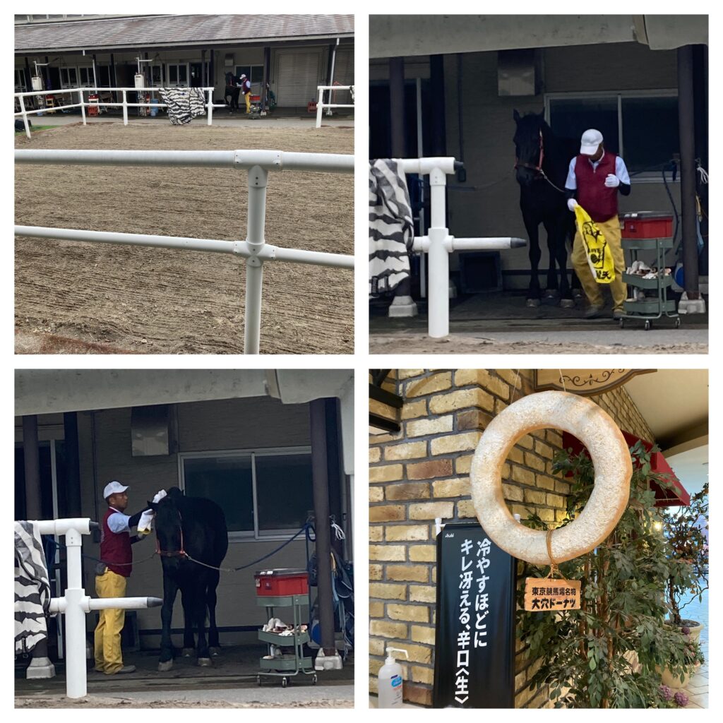 馬小屋では出走馬たちの日常が垣間見えます。