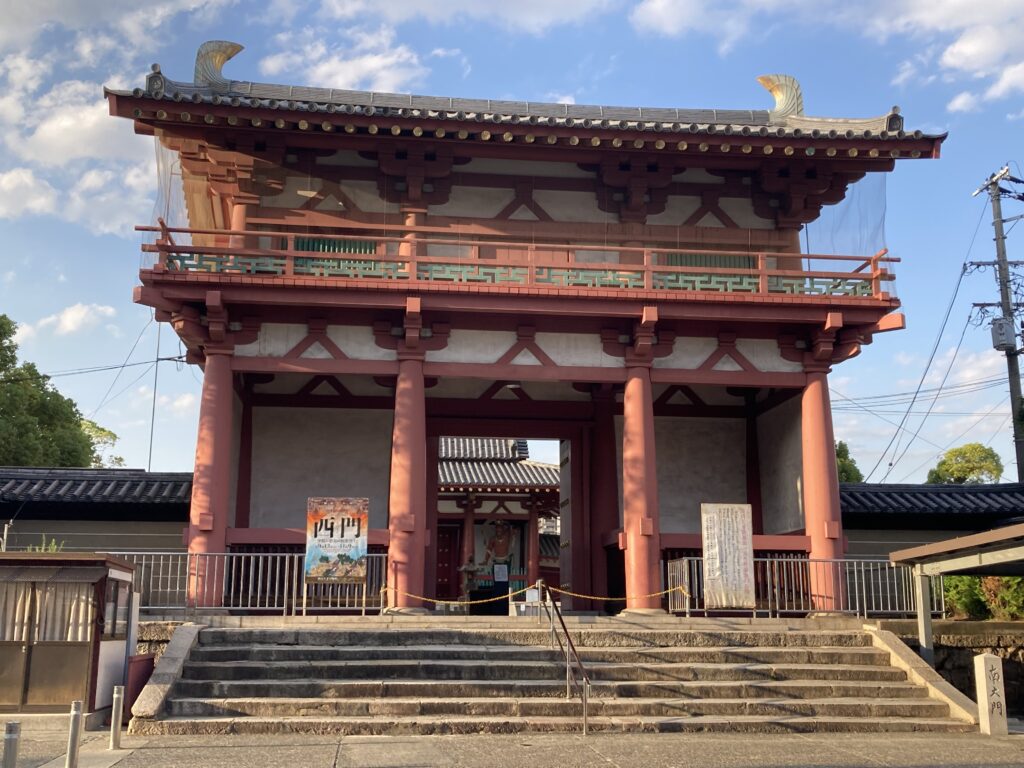 中門・五重塔・金堂が一直線に並ぶ伽藍配置が特徴です。