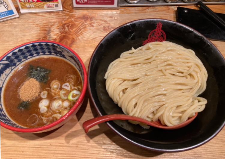 特徴は、極太の自家製麺と濃厚な豚骨魚介スープ。