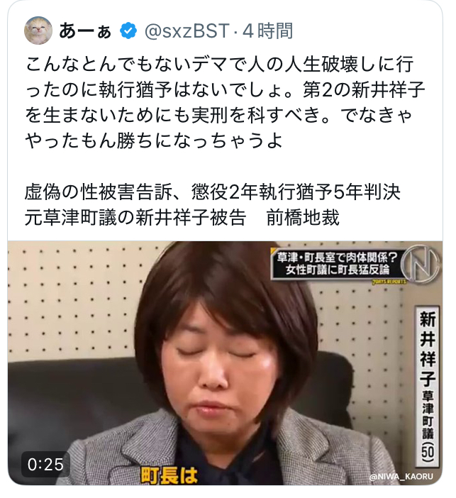 前橋地裁は、新井氏に対し、虚偽告訴と名誉毀損の罪で懲役2年、執行猶予5年の判決を言い渡しました。
