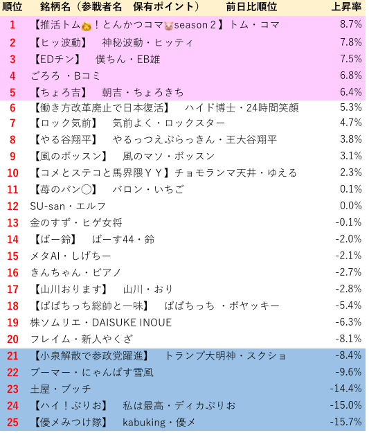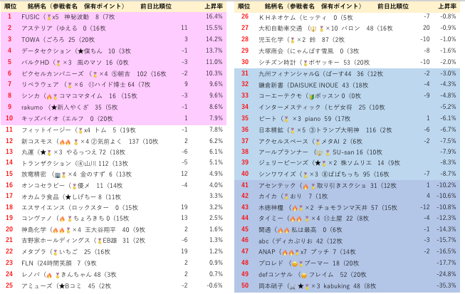 🏆第313回 鉄人戦 ⑤終値🏆(9/16〜9/19)鉄人戦Processed with MOLDIV 2025.09.20スポンサーリンク優勝🏅V6 神秘波動 おめ🎉10P@9qch65Eo5WldyEH優勝者へのフォローよろしく👍2位 ゆえる 9P3位 ごろろ 8P4位 僕ちん 7P5位 風のマソ 6P6位 朝吉 5P7位 ハイド博士 4P8位 コマコマタイム 3P9位 新人やくざ 2P10位 エルフ 1Pお疲れ様でした、良い週末を😊Processed with MOLDIV