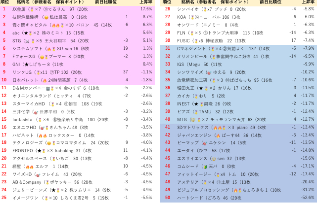 🏆第315回 鉄人戦⑤ 終値🏆(9/29〜10/3)鉄人戦Processed with MOLDIV 2025.10.03スポンサーリンク優勝 🏅V8 てるりん おめ🎉10P@040ppd0HWA67lJT優勝者へのフォローよろしく👍2位 私は最高 9P3位 バロン 8P4位 株のミコト 7P5位 王大谷翔平 6P6位 SU-san 5P7位 ブーマー 4P8位 しげちー 3P9位 TP 2P10位 24時間笑顔 1Pお疲れ様でした、良い週末を😊Processed with MOLDIV