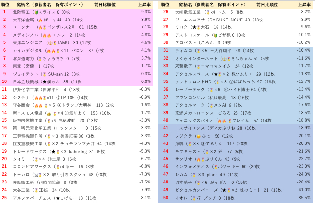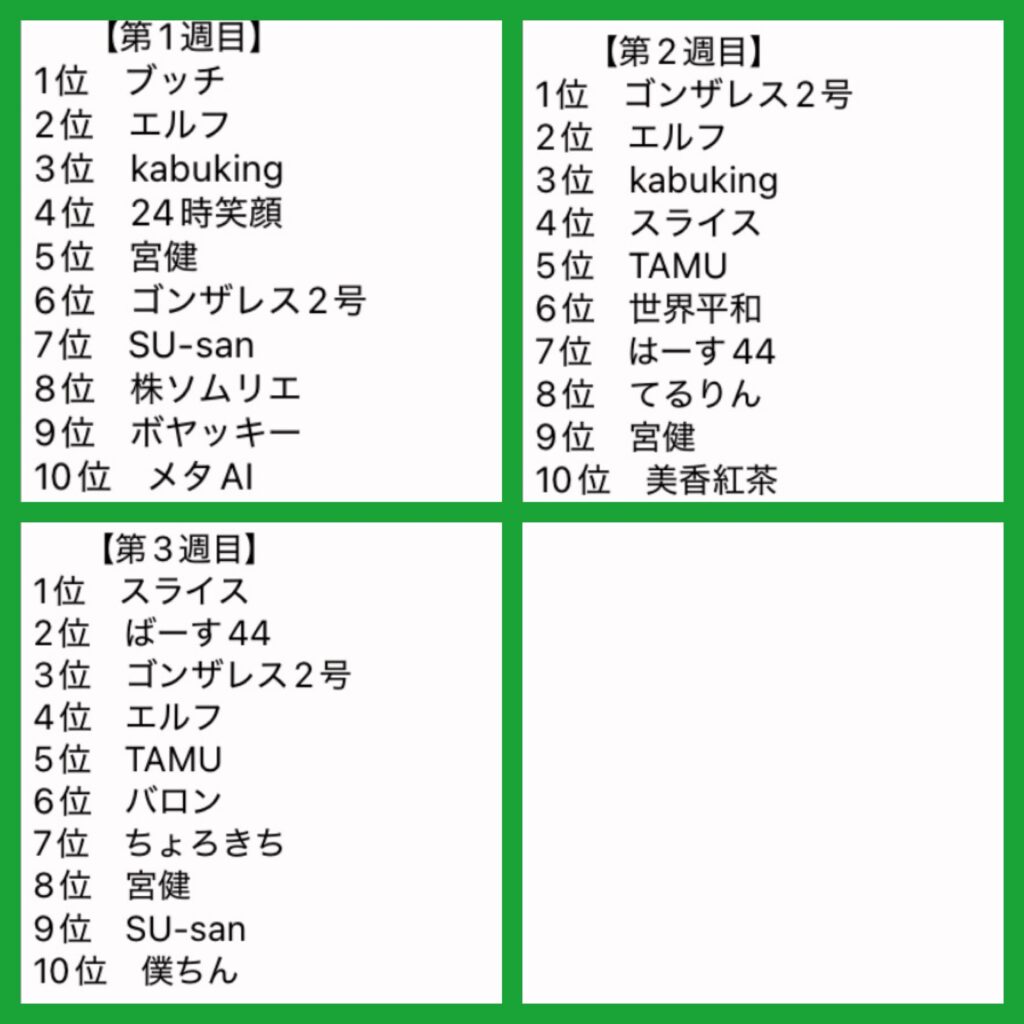 1週間の様な短期勝負は、自分の投資に合ってないというリクエスト📢にお応えして、1ヶ月上昇レースが始まりました。