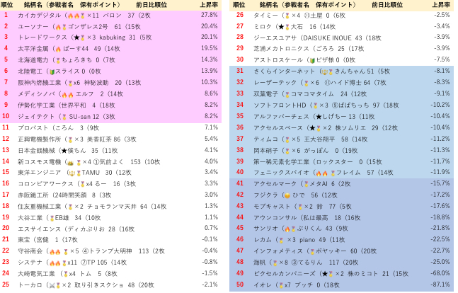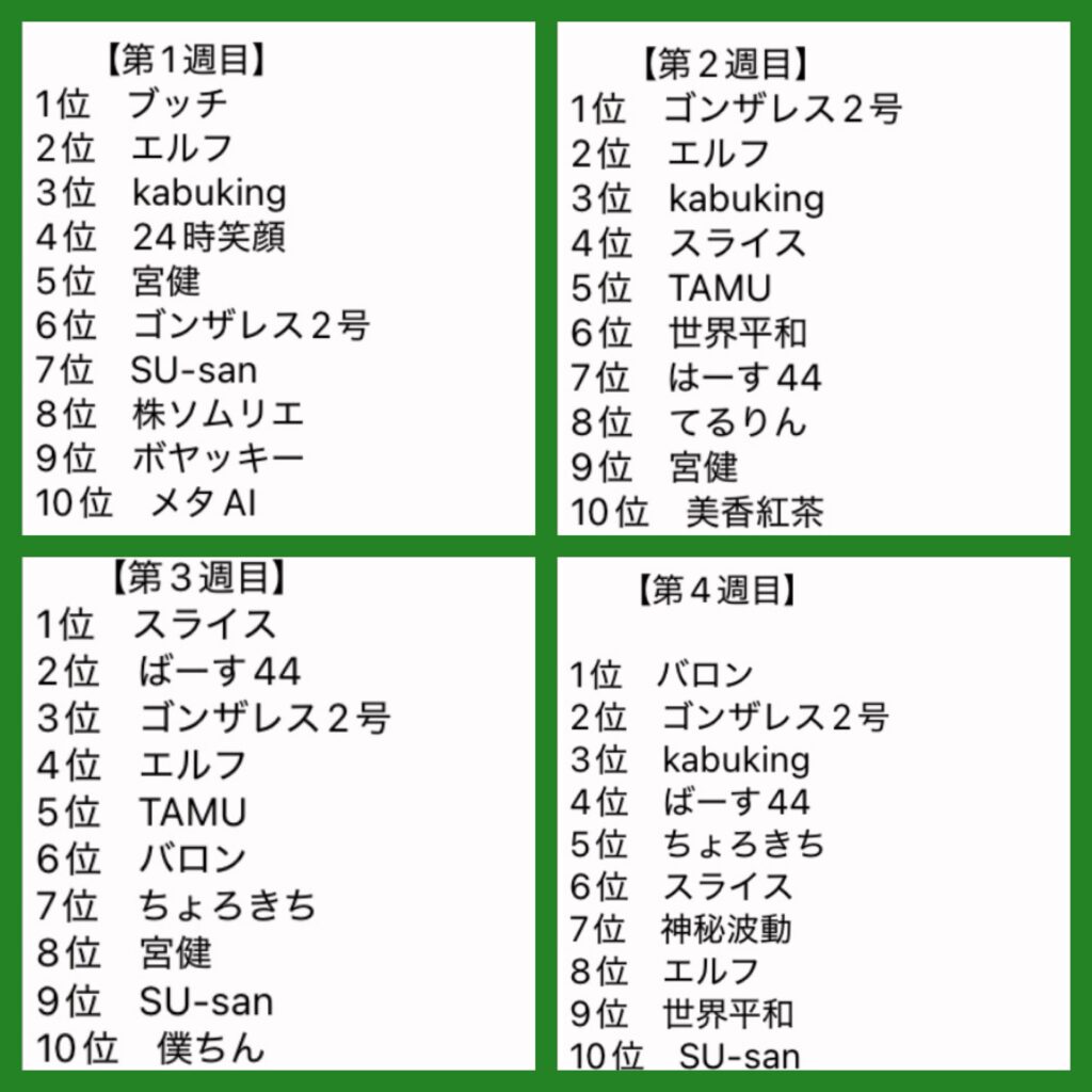 1週間の様な短期勝負は、自分の投資に合ってないというリクエスト📢にお応えして、1ヶ月上昇レースが始まりました。