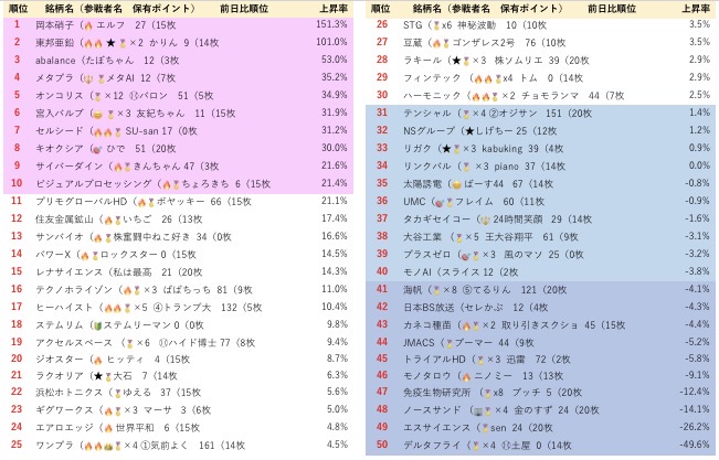 1週間の様な短期勝負は、自分の投資に合ってないというリクエスト📢にお応えして、1ヶ月上昇レースが始まりました。