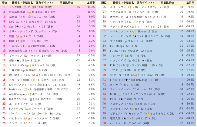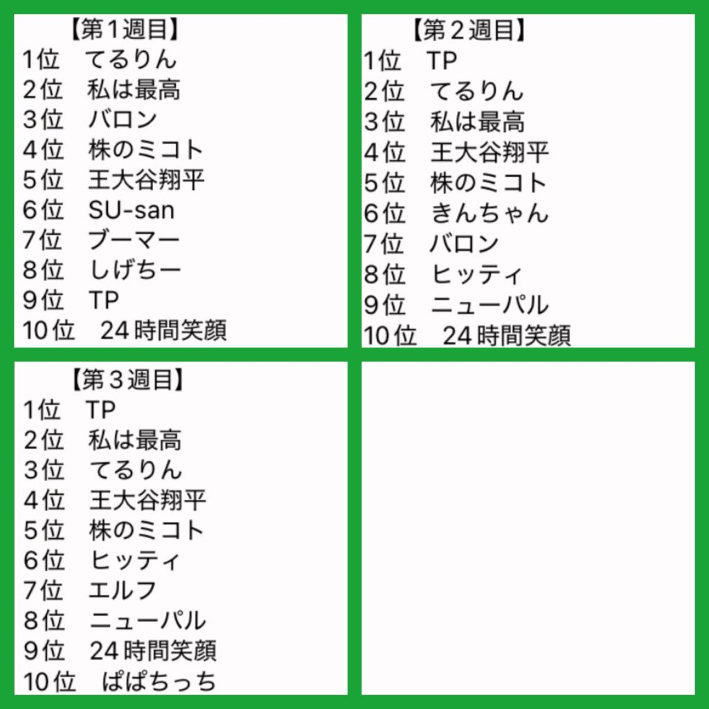 1週間の様な短期勝負は、自分の投資に合ってないというリクエスト📢にお応えして、1ヶ月上昇レースが始まりました。