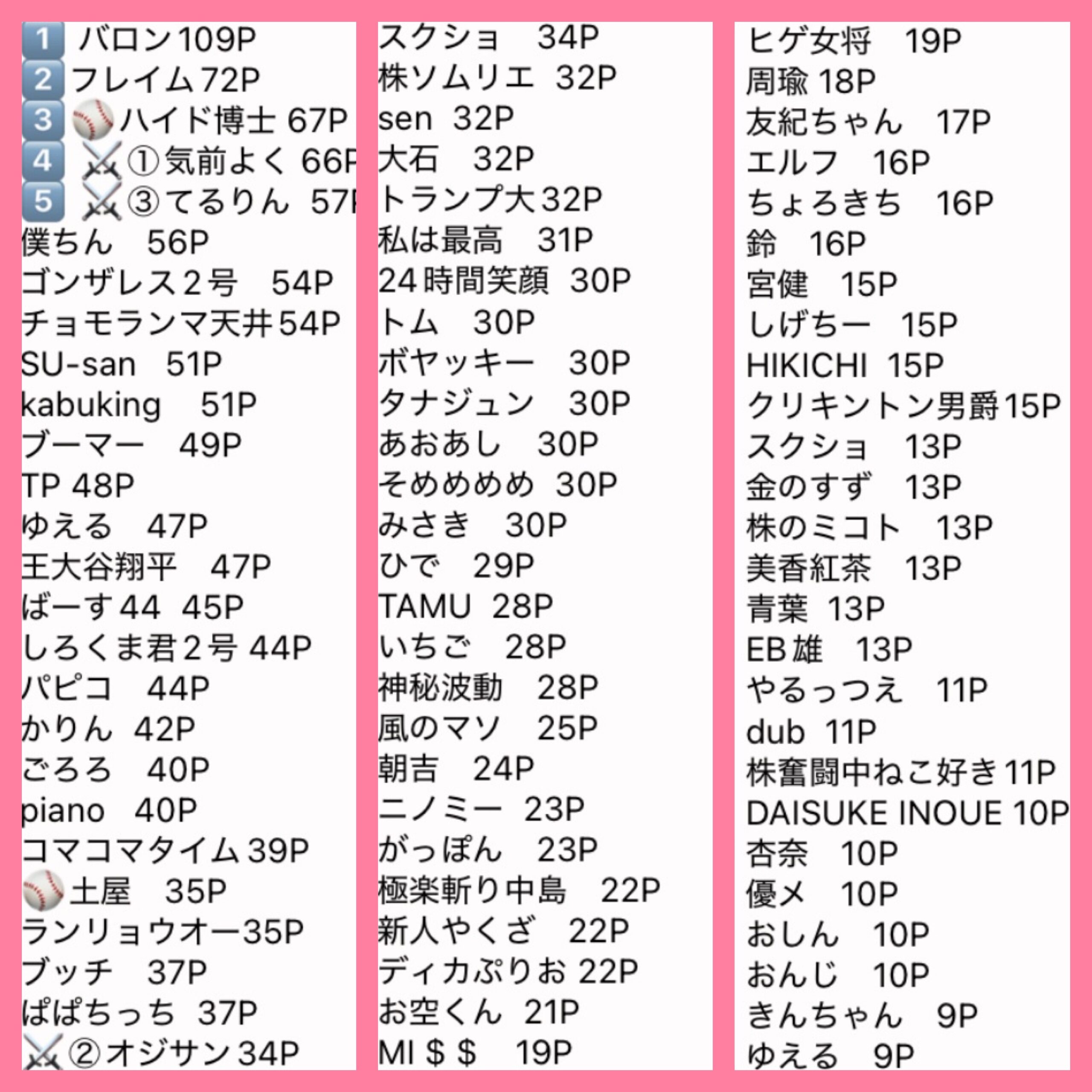 ここでの順位はポイント減少は考えず獲得だけです☝️