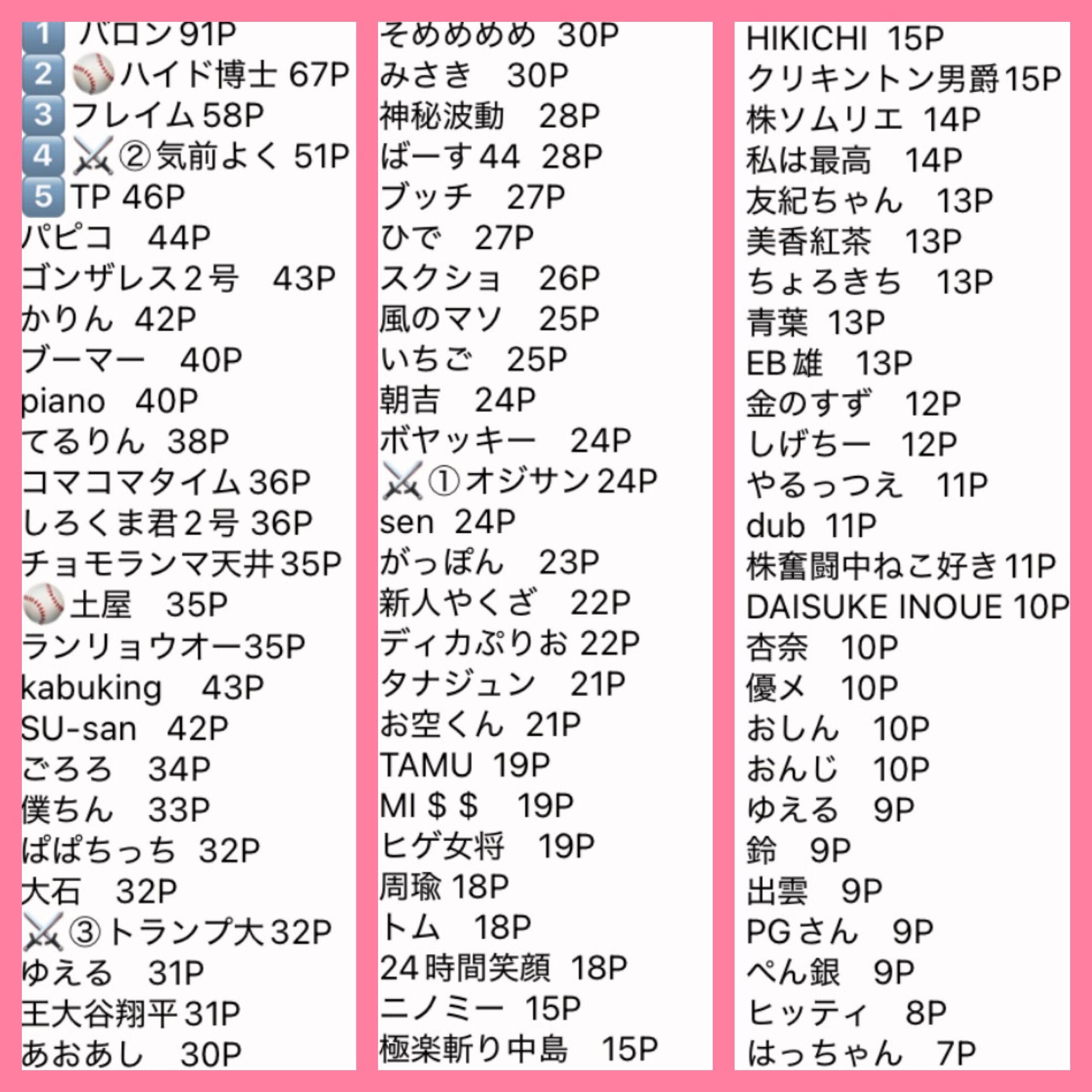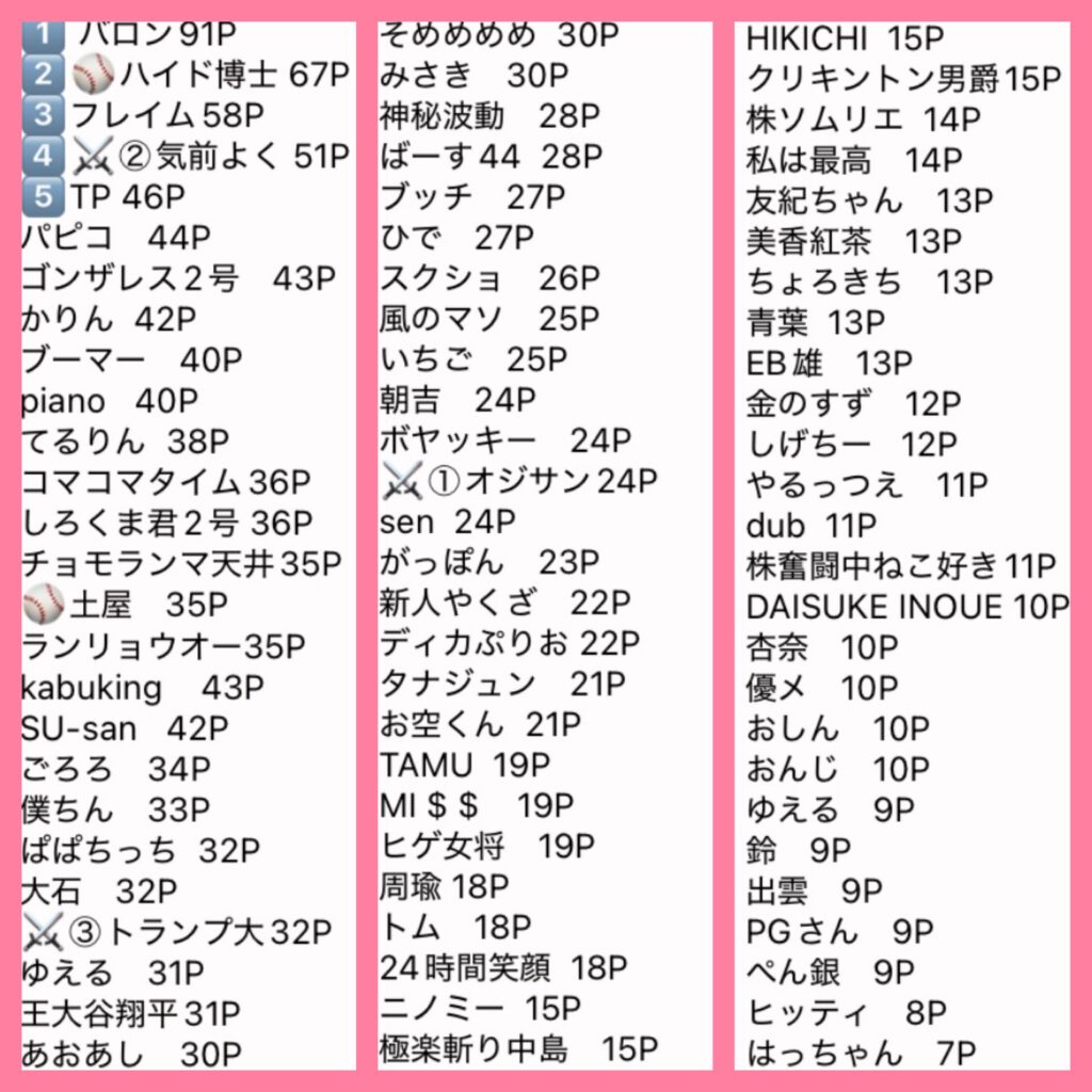 ここでの順位はポイント減少は考えず獲得だけです☝️