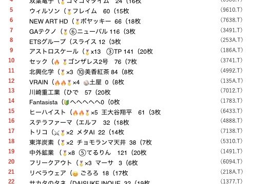 鉄人戦🏆第327回 鉄人戦⑤終値🏆(12/22〜12/26 ) 優勝🏅 V13 TP おめ🎉 10P 2位 メタAI 9P3位 24時間笑顔 8P4位 ブーマー 7P5位 金のすず 6P6位 ゆえる 5P7位 しげちー 4P8位 スライス 3P9位 私は最高 2P10位 sen 1P 鉄人... 2025.12.26 0鉄人戦